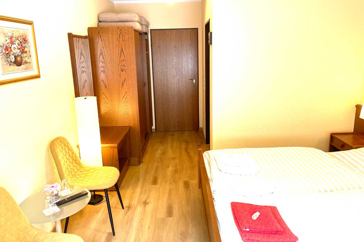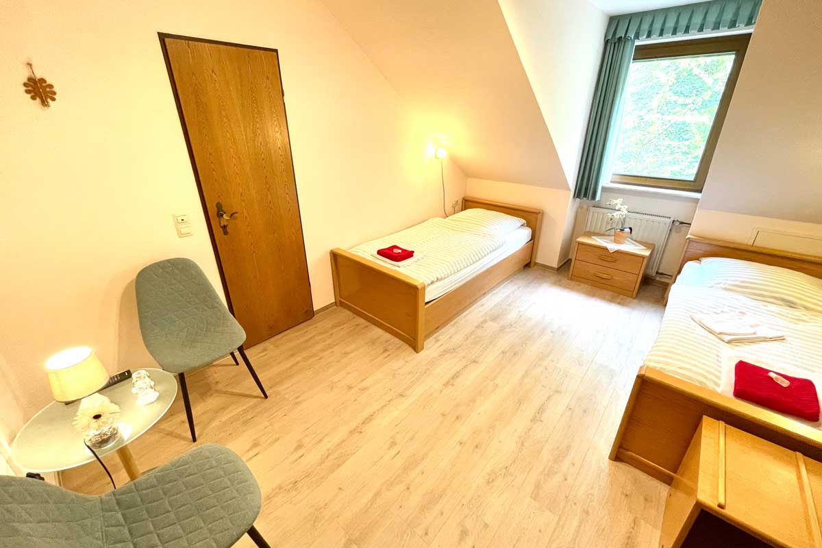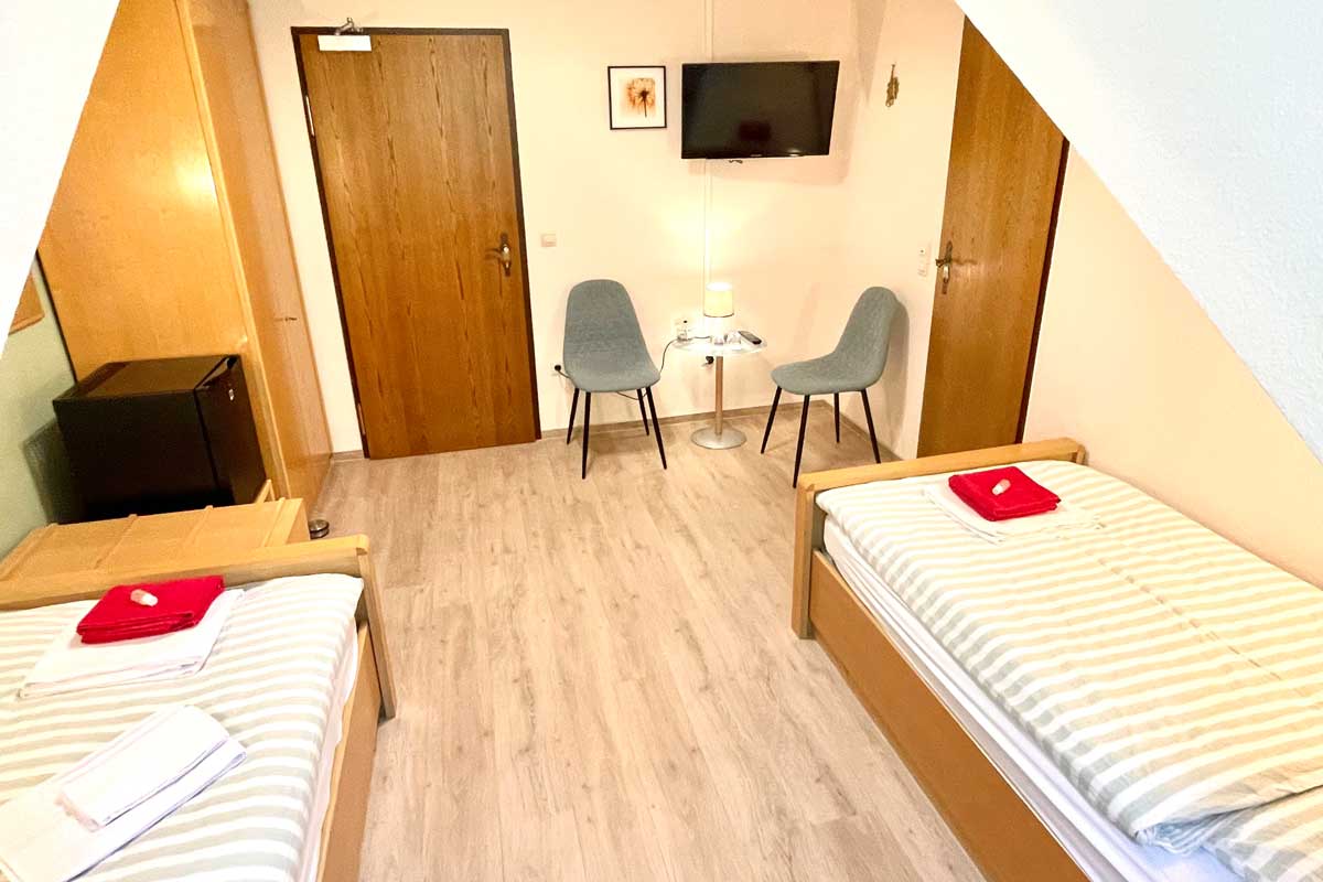 Wir bieten Ihnen Einzelzimmer, Doppelzimmer und ein Apartment. Prüfen Sie die Verfügbarkeit und nutzen Sie einfach den Anfrage-Button und wir senden Ihnen Ihr individuelles Angebot schnell und unverbindlich zu.